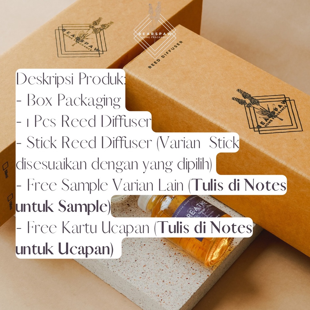 Essential Oil Reed Diffuser Bearspaw BREATHE(LEMONGRASS) 50ml – Pengharum Ruangan Elegan (Aromatherapy) dengan Stik Rotan & Dried Flower