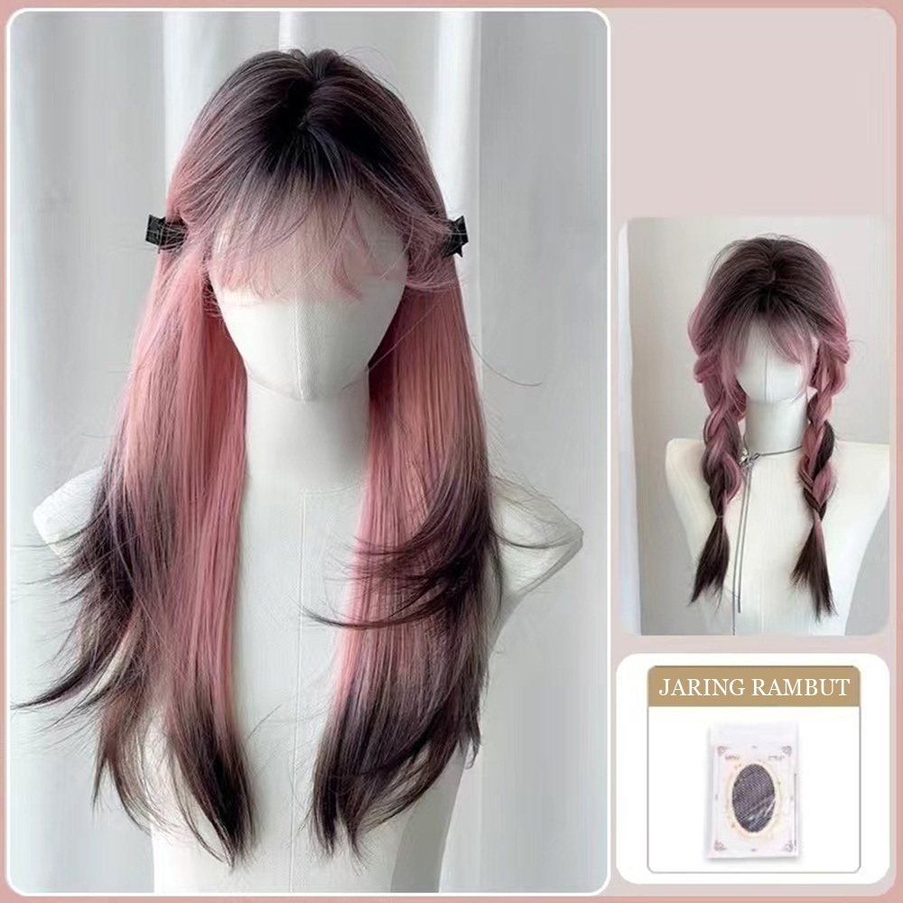 Wig Wanita Full Kepala/Korean Ombre Wig/Wig Daily Natural Wanita/Wig Rambut Panjang curly LAYER WAVE/Wig Premium Rambut