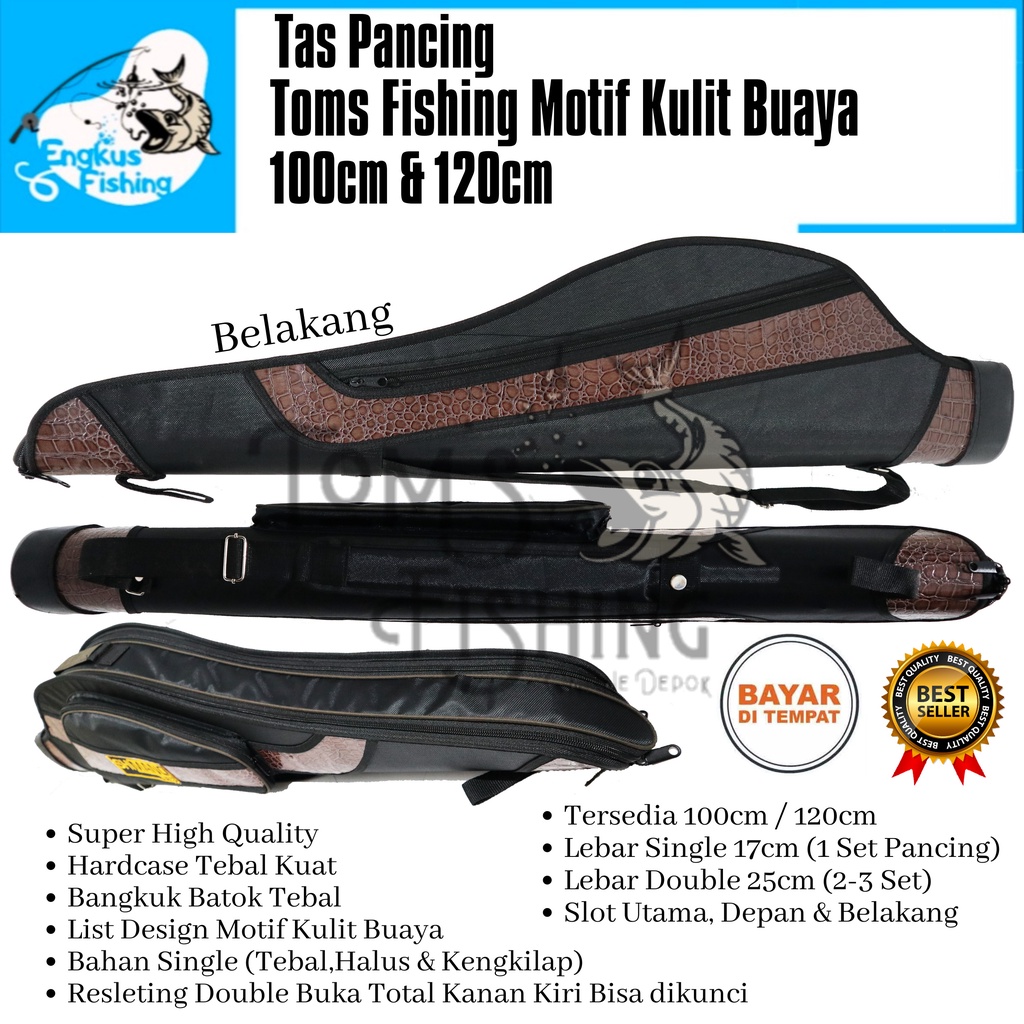 Tas Pancing Toms Fishing Motif Kulit Buaya Hardcase Batok Mangkok 100Cm/120Cm (Super Kualitas) Double Resleting Murah -