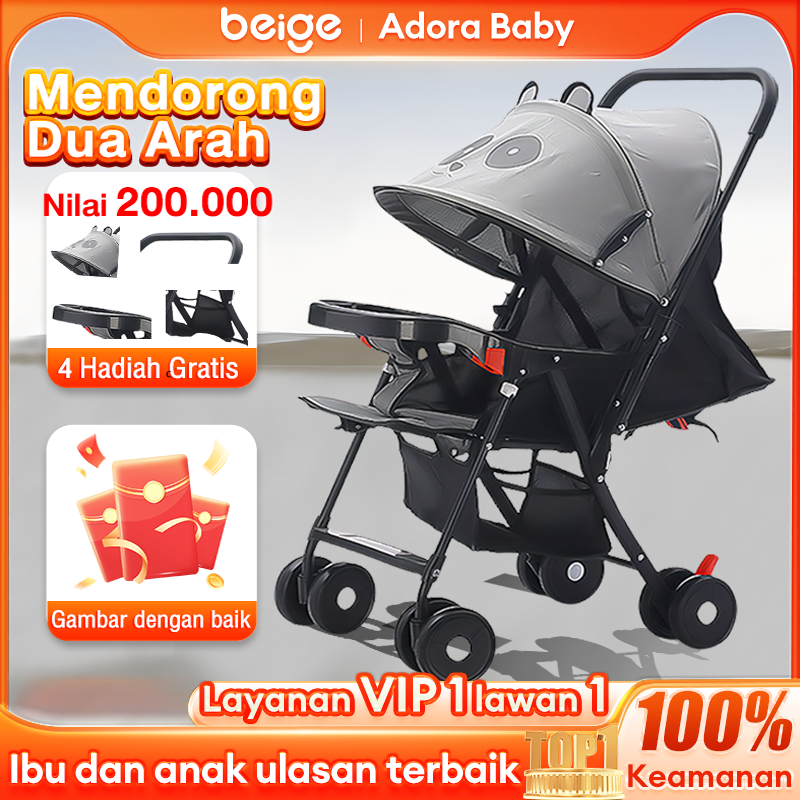 BEIGE Stroller Bayi Lipat Travelling Kereta Dorong Bayi 2 arah Batas beban 45KG