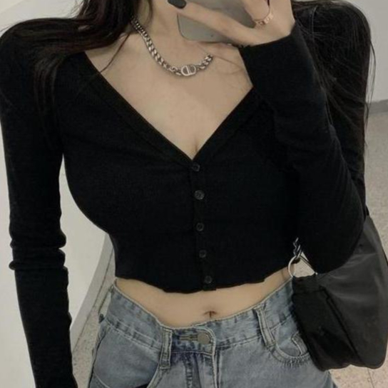 Cardigan Long Sleeve Button Front Crop Tops 1637 (S/M/L/XL)