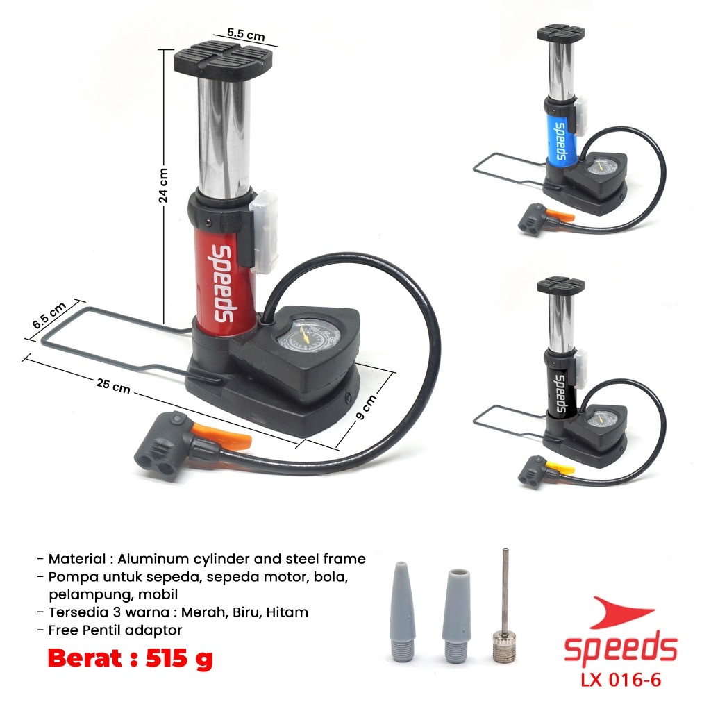 SPEEDS Mini Foot Pump Portable High Pressure-Pompa Angin Kaki Untuk ban mobil, motor 016-6