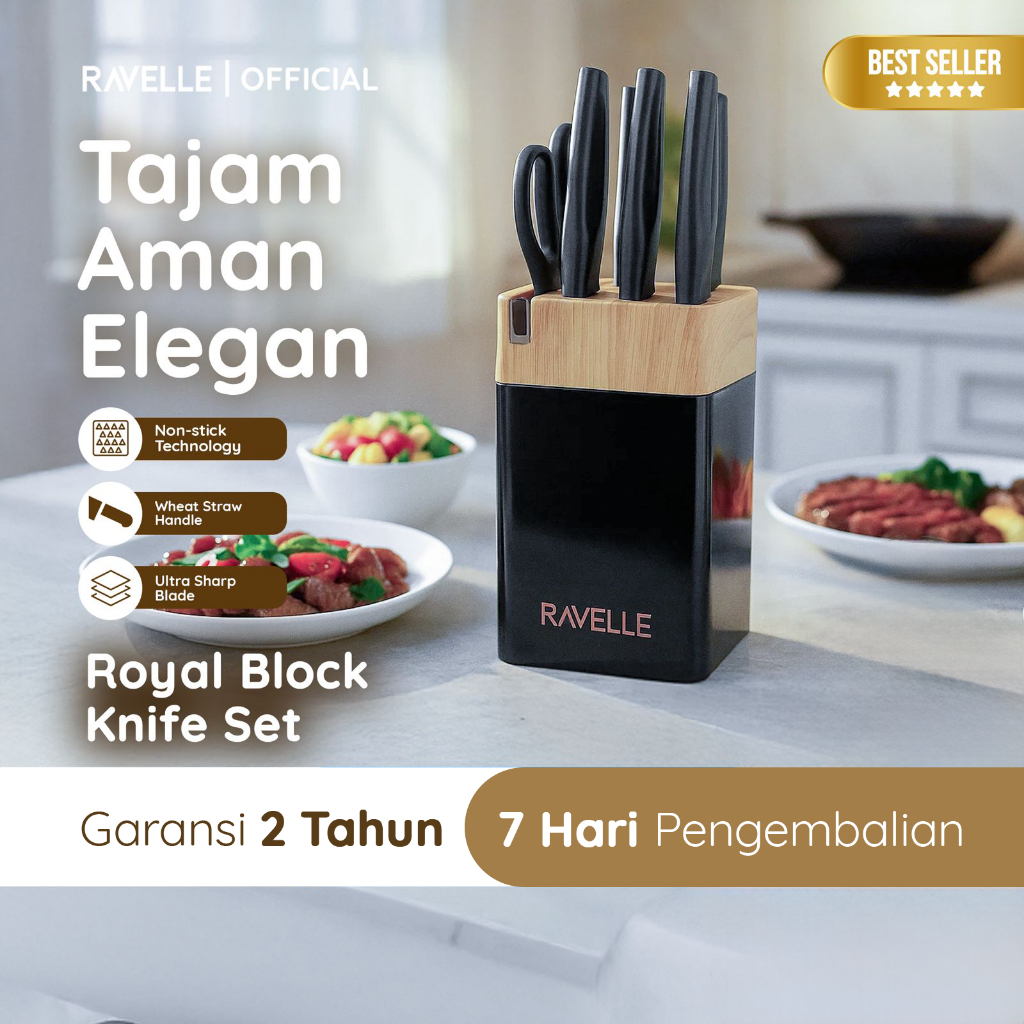 Ravelle Pisau Dapur Anti Lengket 7 In 1 Set - Royal Block Knife Set
