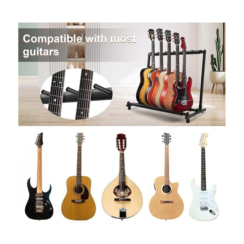 Rak Stand Multi Gitar Dengan Desain Lipat Dudukan Gitar BergandaPemegang Gitar Hitam Portabel Pemegang Tamp