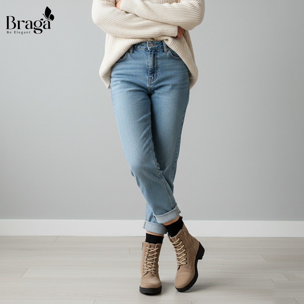 BRAGA Nada B 4571 Sepatu Boots Wanita Kulit Sintetis Warna Hitam | Formal Kerja Kantor Guru Boot