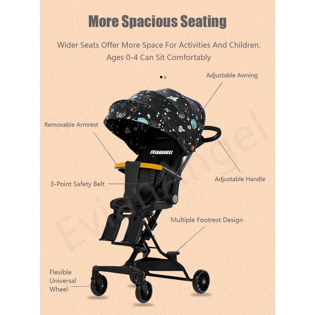 EVIANANGEL Stroller Baby Kereta Dorong Bayi 2 Arah Traveling Foldable Bayi Magic Stroller Stroller Bayi Lipat Travelling