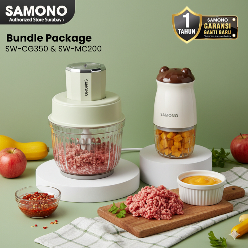 Samono Bundling Chopper 2,5L + 300Ml Kaca Elektrik Rendah Watt Penghalus Bumbu Makanan Daging Mpasi Alat Pencacah Bawang
