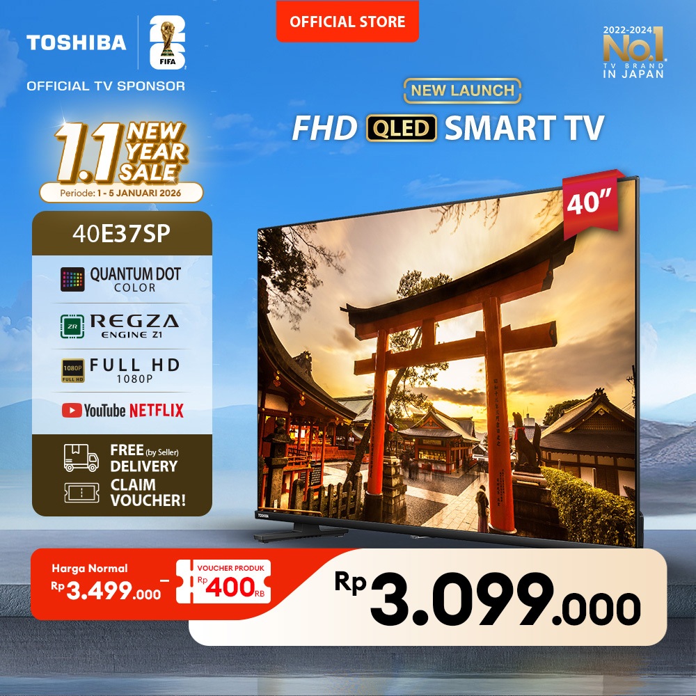 [KHUSUS ONLINE] Toshiba TV 40" QLED FHD Smart TV - Dolby Audio Netflix Disney+ Youtube Screen Sharing Remote Voice Control HDMI Bluetooth Digital WIFI - 40E37SP