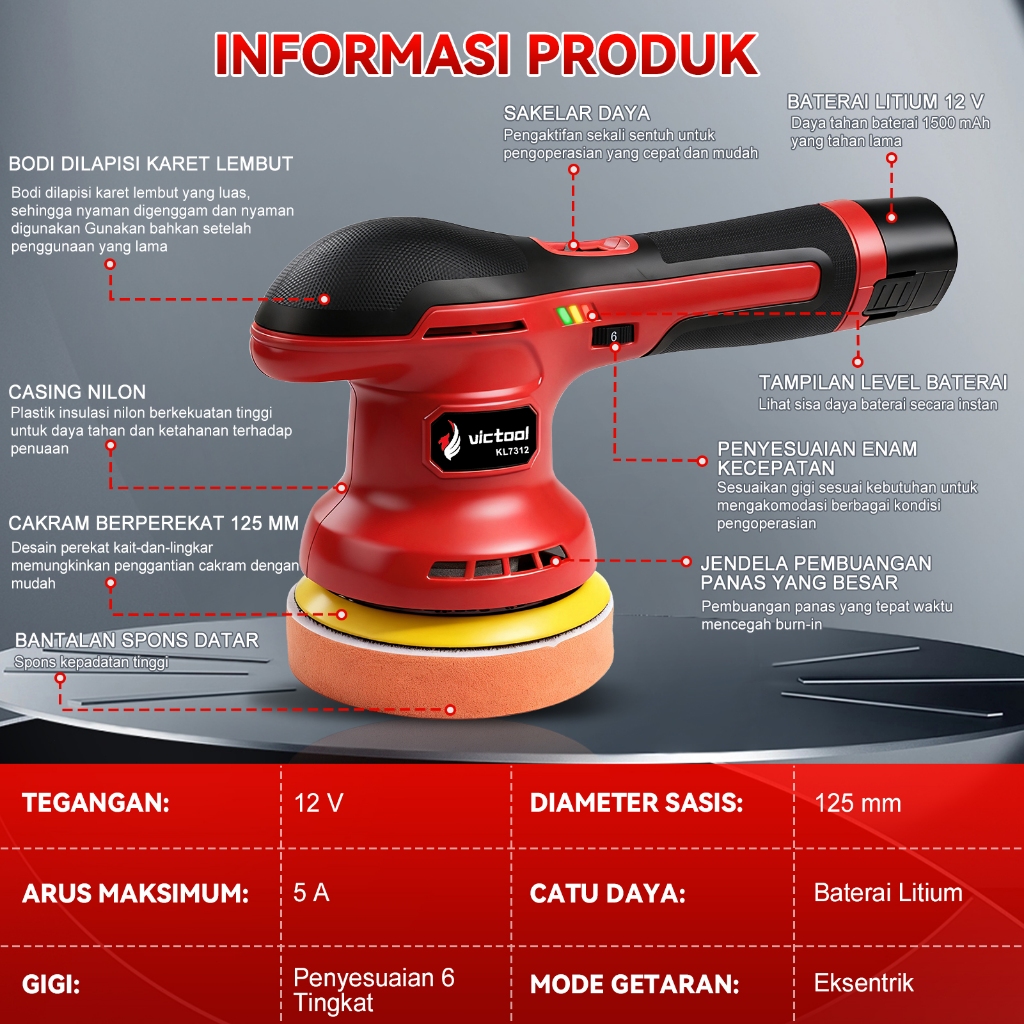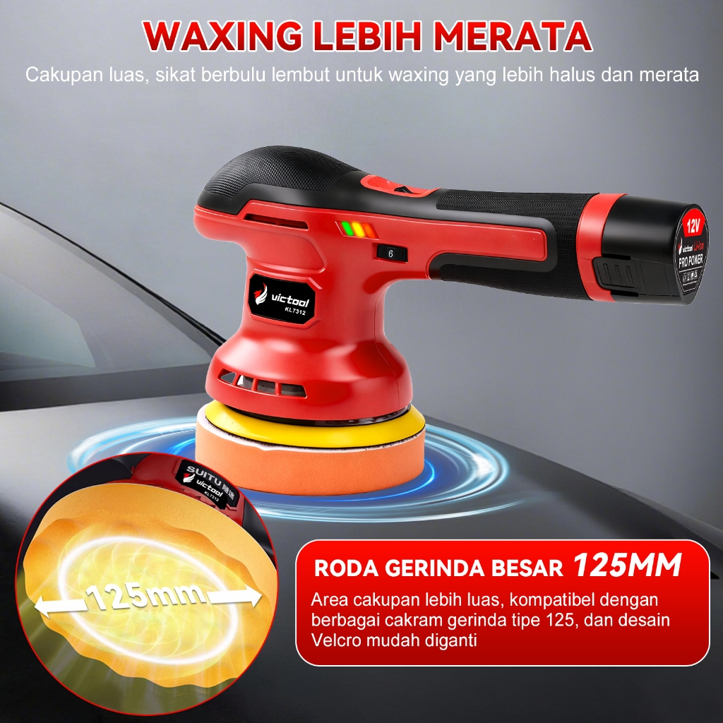 DEWIN Mesin Poles Body Mobil Cordless 5Inch Mesin Polisher 12000RPM Car Kaca Alat Poles