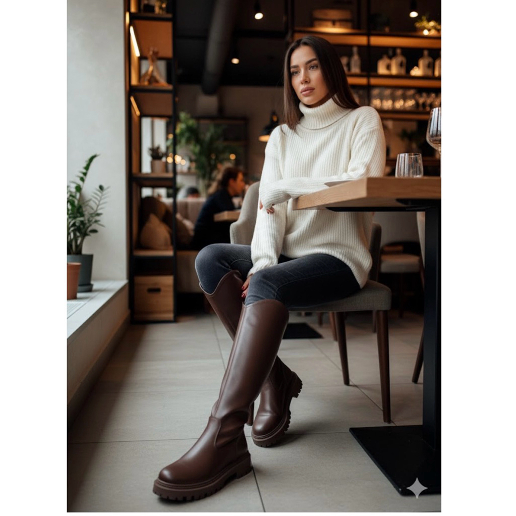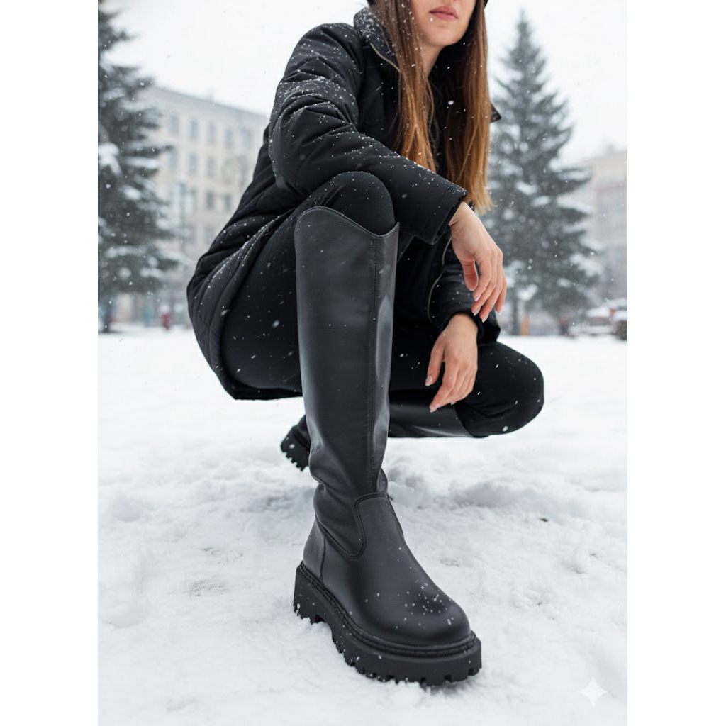 Leather High Knee Boots Import Wanita Musim Dingin Big Sepatu Overknee High Knee Boot Cewek Korea Fashionable Heels Winter