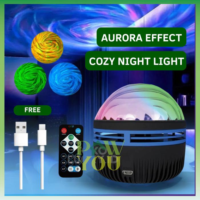 Lampu Aurora Proyektor USB LED RGB Night Light Galaxy Rotasi 360° Aesthetic Dekor Kamar - Aurora