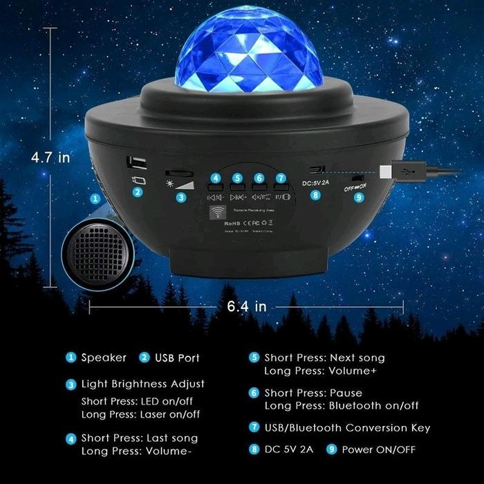 Lampu Proyektor Langit dan Speaker Bluetooth Musik / Lampu Tidur Lampu Kamar Room Lamp / Hitam
