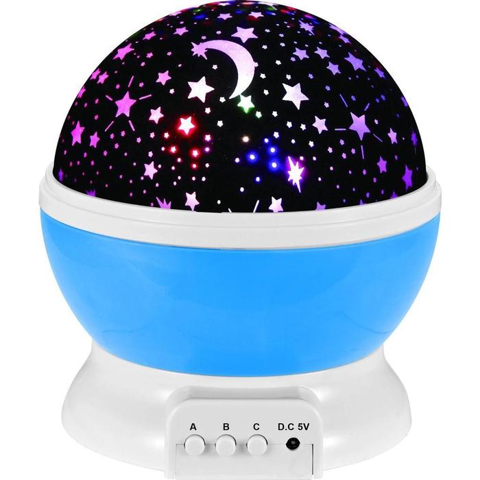 BISA c06 L5241 Lampu Tidur Dengan Model Proyektor Desain Bulan dan Bintang Untuk Kamar Tidur Baterai - Biru