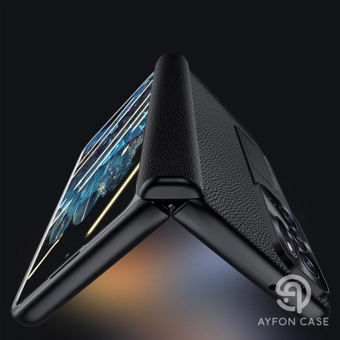 CASE FOR Z FOLD 4 Z FOLD 5 Z FOLD 6 Z FOLD 7 MAGNETIC KICK STAND LEATHER HARDCASE AF-213 - BLACK Z FOLD 4