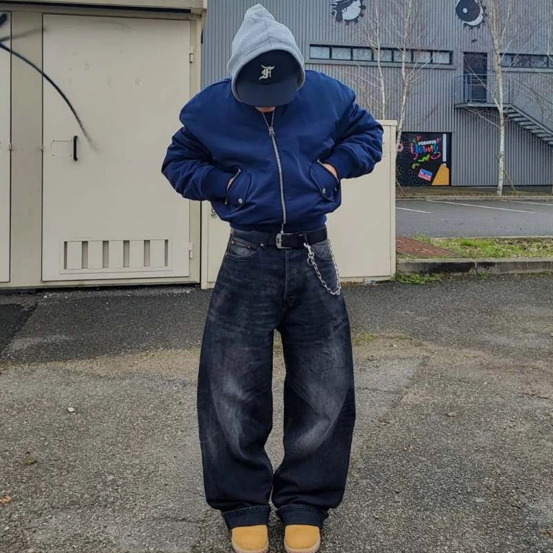 big sale celana baggy pria Celana Jeans Denim Pria Loose Baggy Whisker Streetwear Casual Oversize celana jeans pria