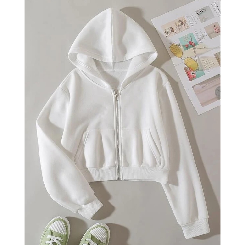 HOODIE ZIPPER BASIC CROP POLOS PREMIUM Jacket Crewneck Sweater Hoodie Wanita Kekinian Oversize Fashion Outfit Ootd Korea
