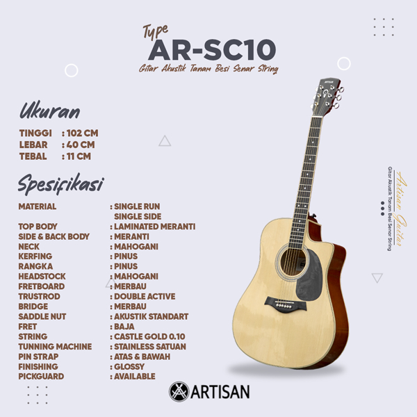 ARTISAN Gitar Akustik Tanam Besi AR - SC10 Senar String Guitar
