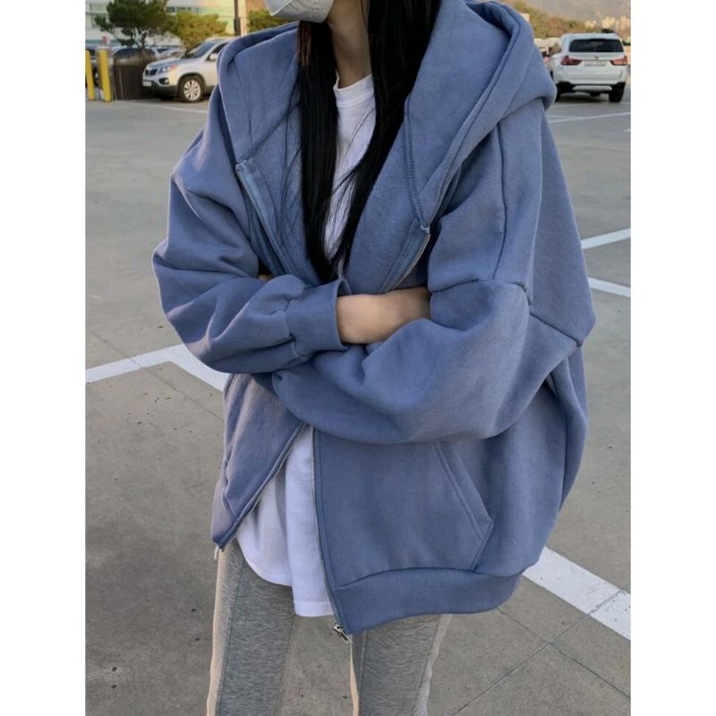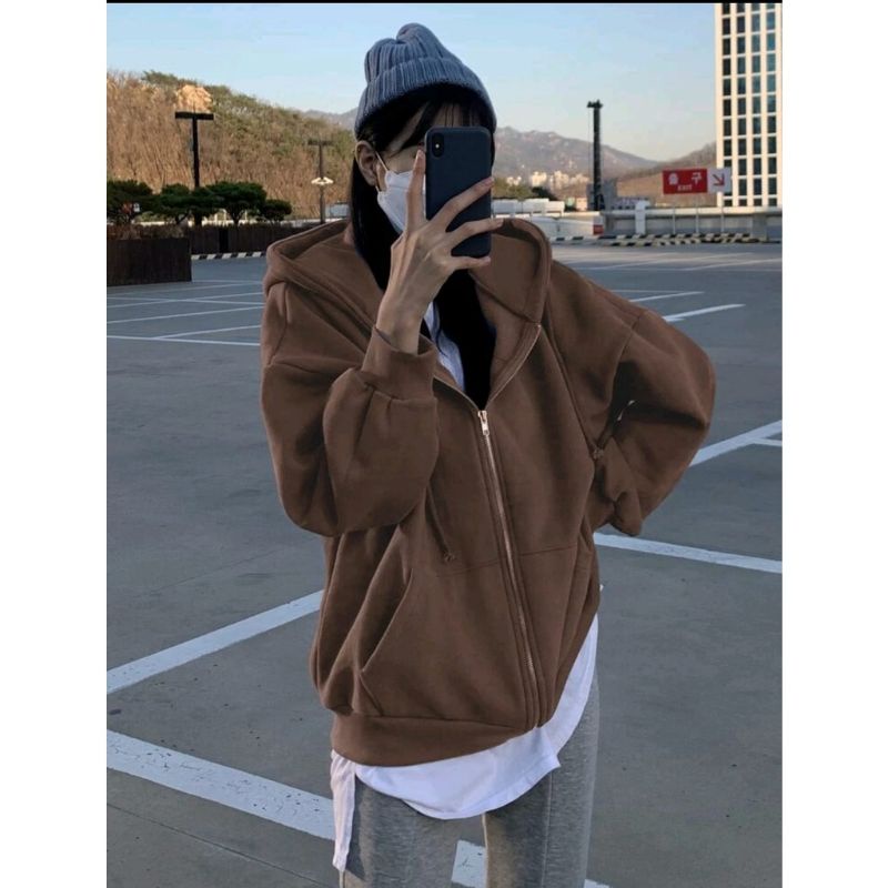 (Imn) XXL Sweater Hoodie Jaket Zipper Polos Wanita Oversize | Hoodie Polos Jaket jumbo Wanita korean Style