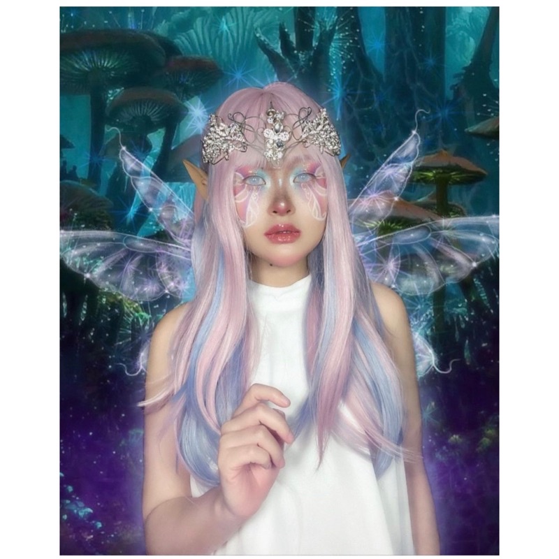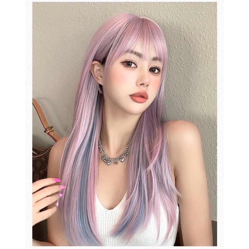 AEGYOSHOPPE - T368 full wig korean straight pink blue 63 cm