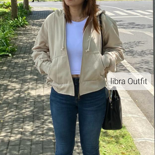 Oversize Crop Wanita Jaket Crop Ziper Wanita Jaket Crope Zip Up Hodie carla by libra