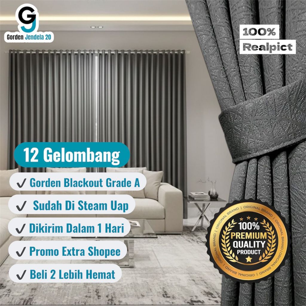 Gorden Jendela Grade A Premium 12 Gelombang Blackout Mewah Terlaris Minimalis Polos Anti Silau