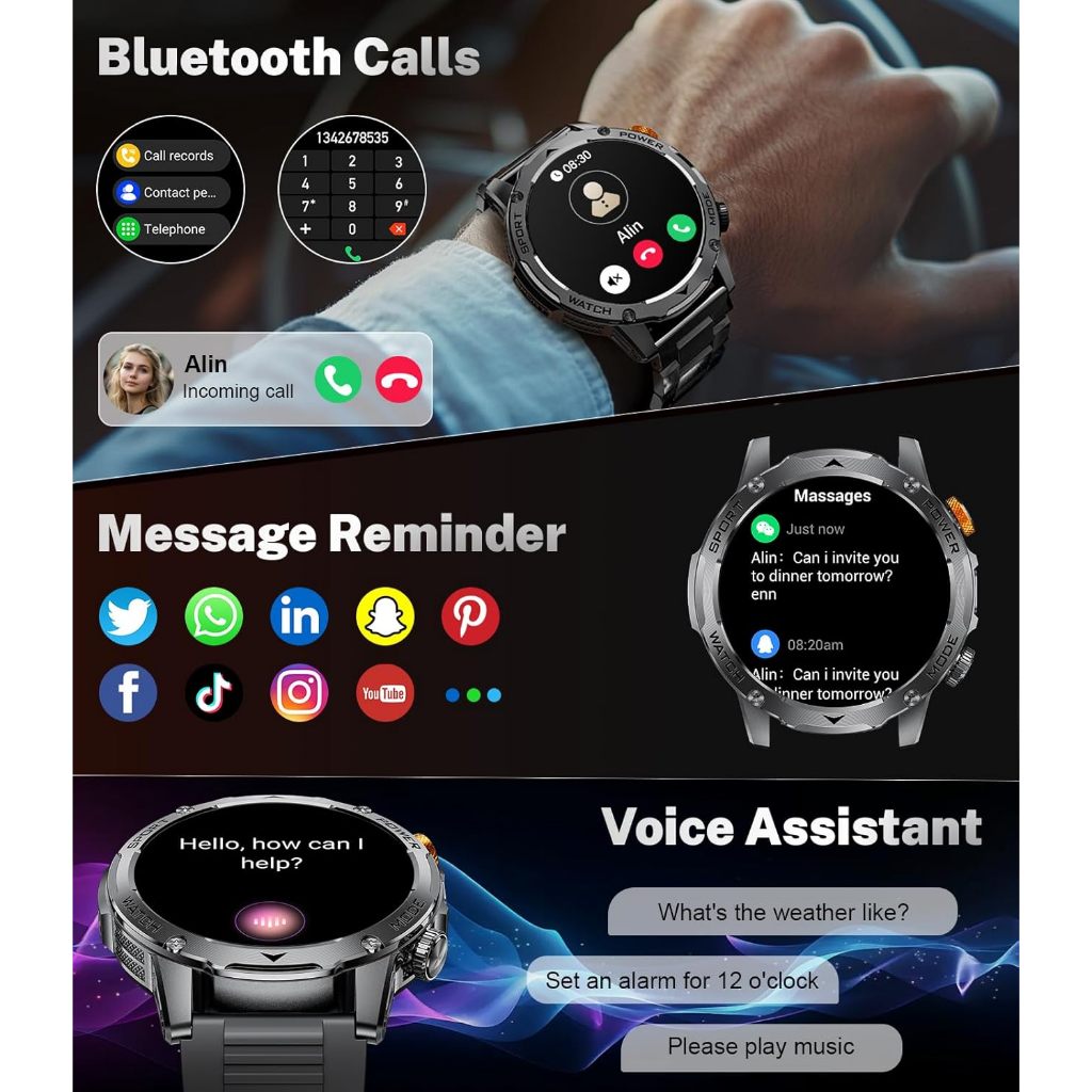 LIGE Smart Watch Men 1000mAh Large Capacity Battery Sport Watch Outdoor Flashlight Bluetooth Call Waterproof Smartwatch