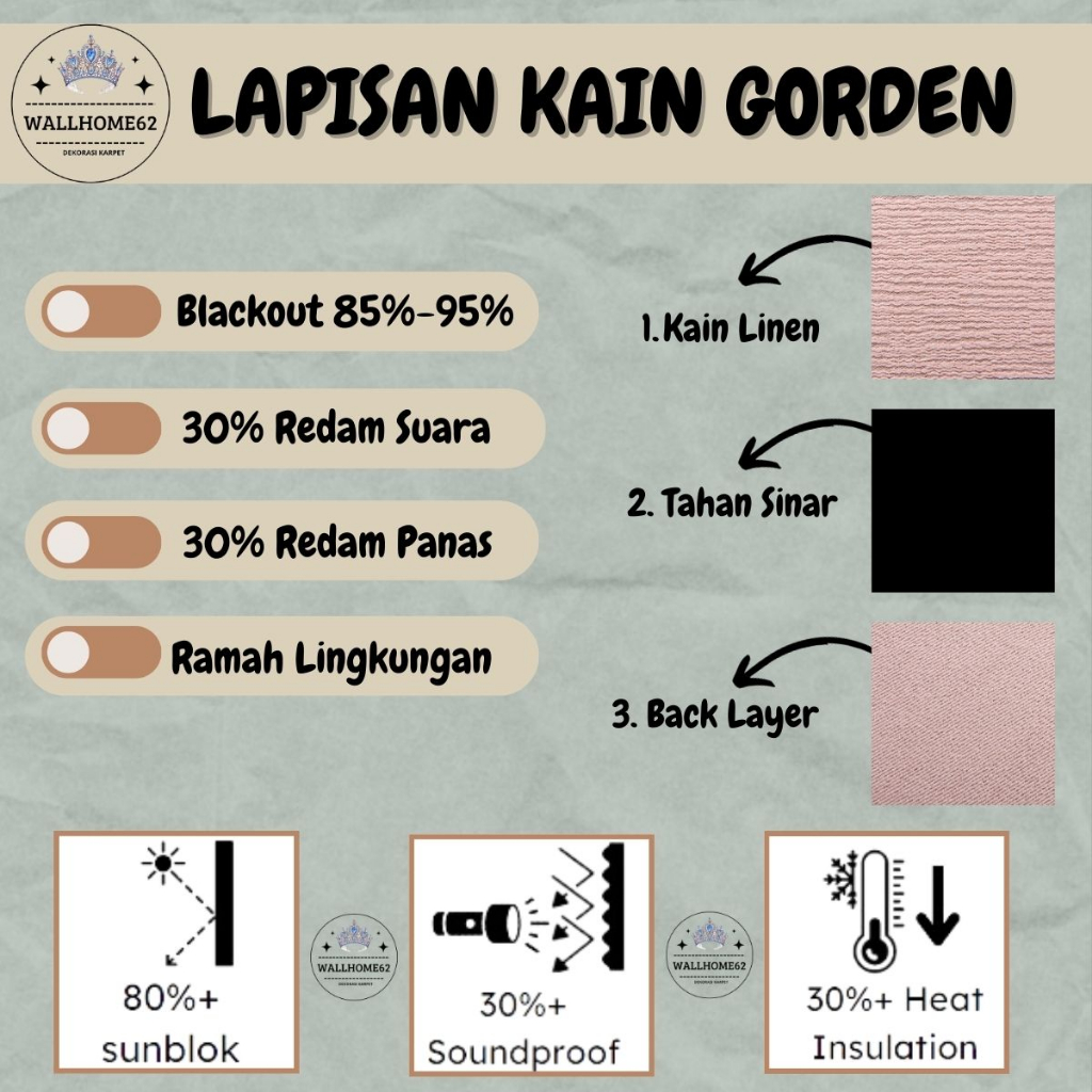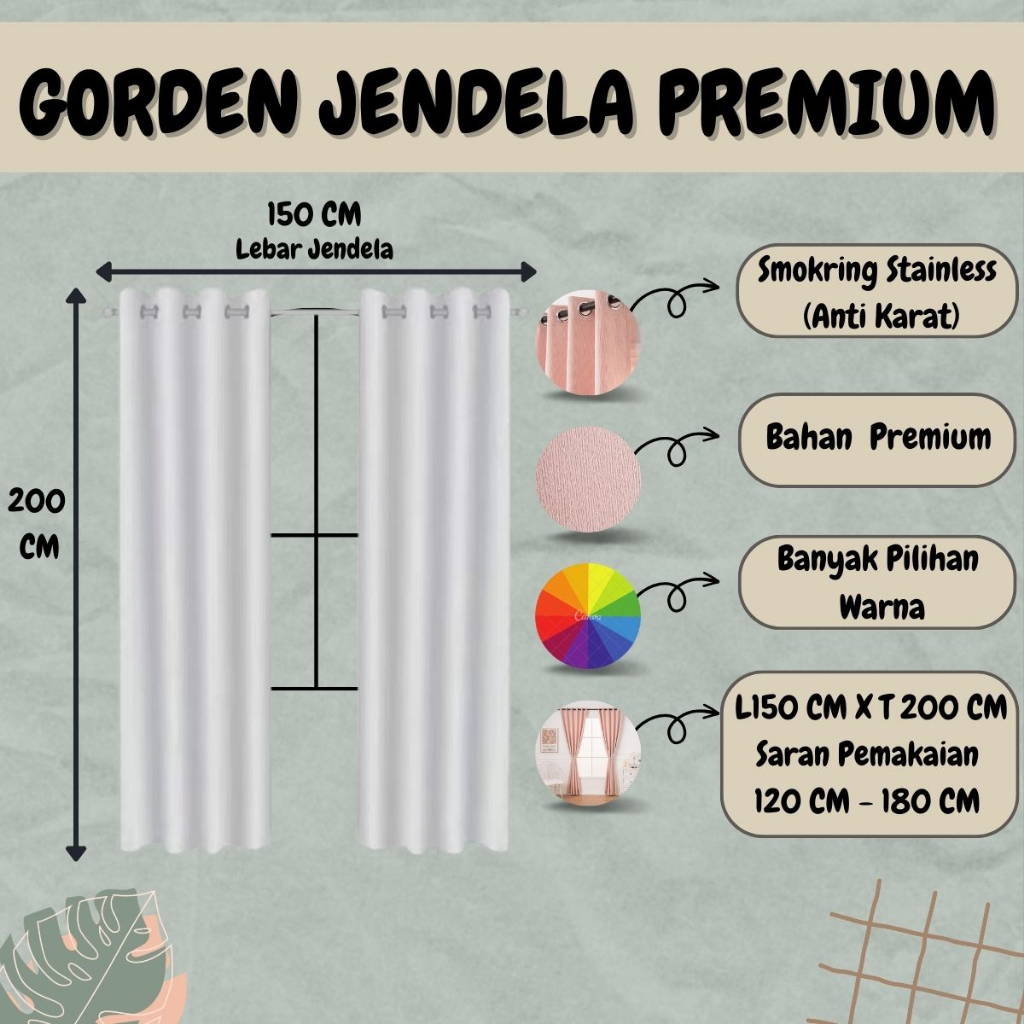 Gorden Premium Bahan Blackout Lebar 1.5 meter