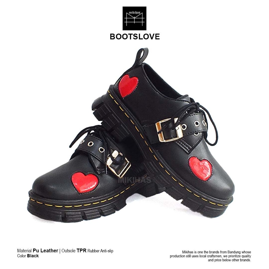 Mikihas Boots'Love - Sepatu Boots Skena Wanita Kekinian Vintage Shoes Hitam Kulit Sintetis Premium