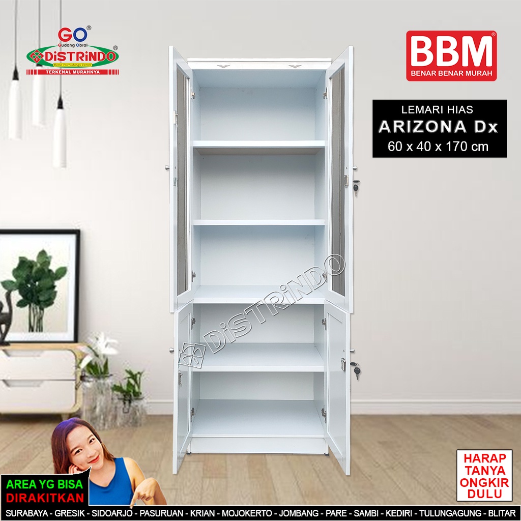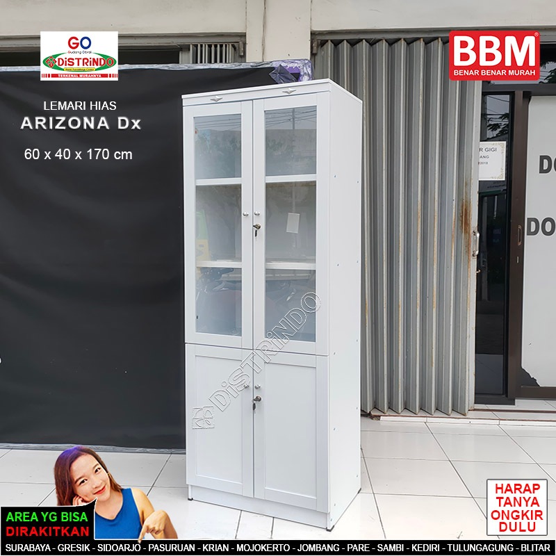 Distrindo - Bufet Lemari Hias Etalase Pintu Kaca + 2 Kunci Serbaguna Untuk Tas, Kosmetik, Konfeksi