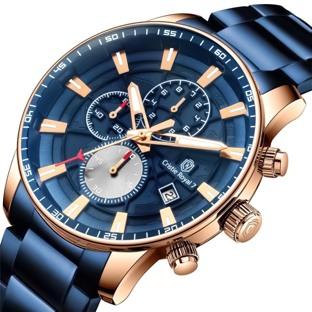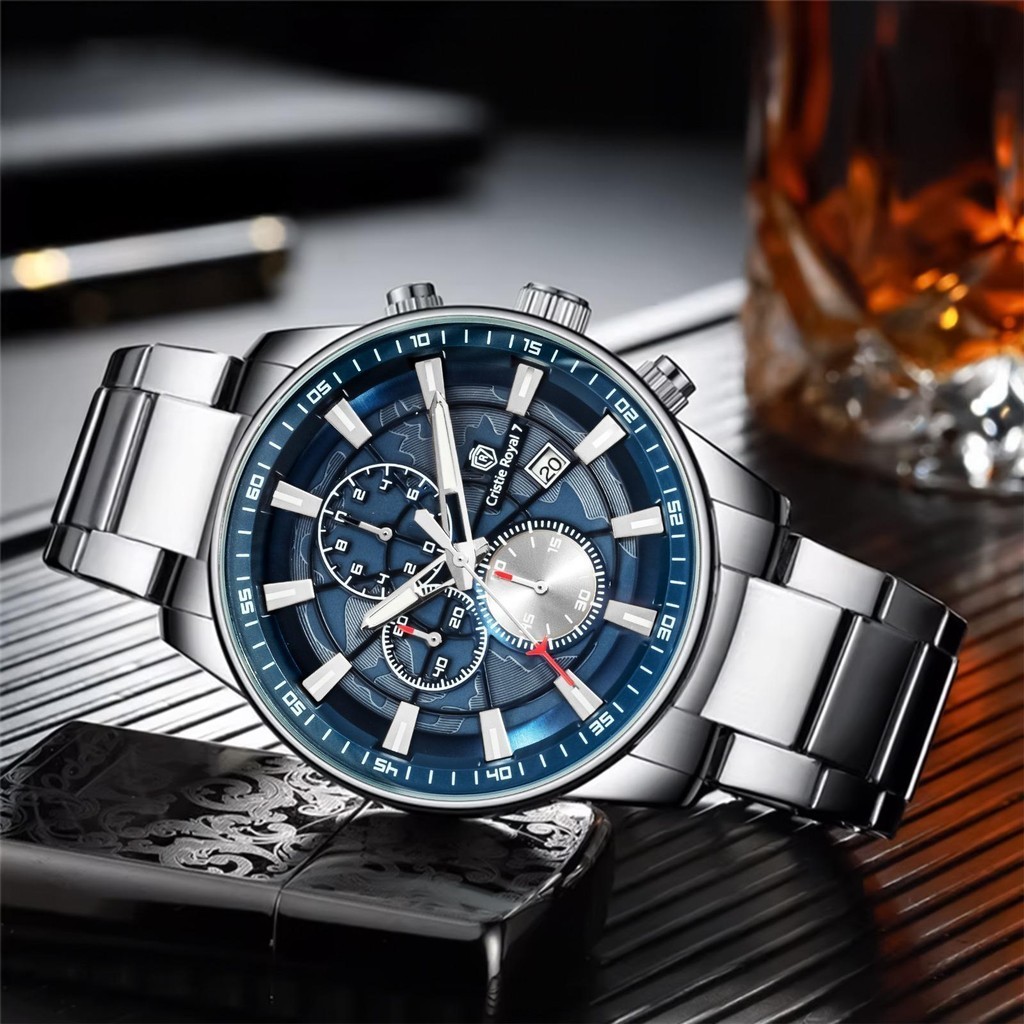 Cristie Royal 7 Jam Tangan Pria 9436 Rantai Stainless Kaca Sapphire Steel Chronograph Water Resistant 5ATM