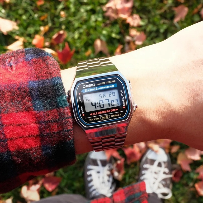 Casio General Vintage A168WA-1W Jam Tangan Unisex Digital Retro Stainless Steel Silver