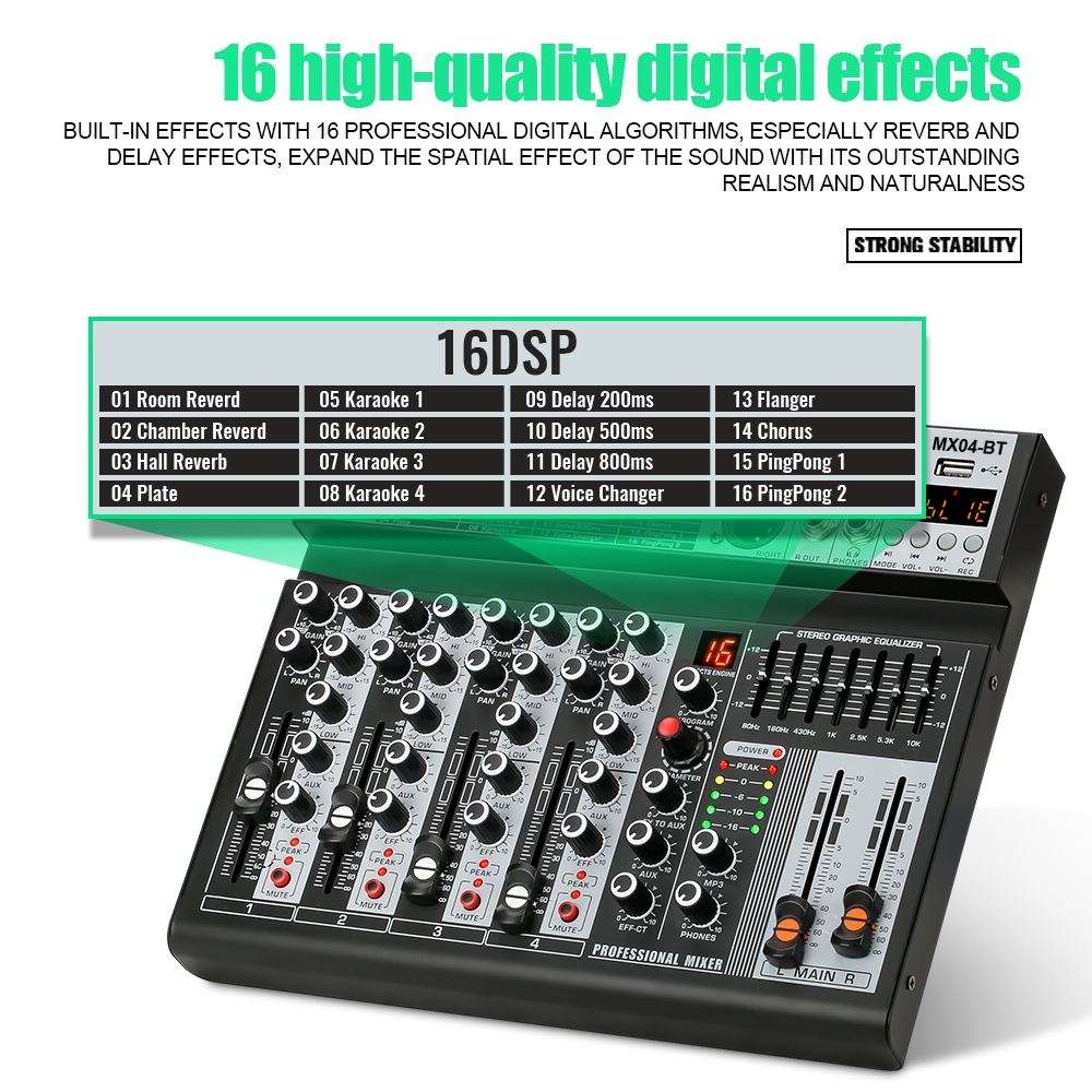 NEW BAXS MX04BT Audio Mixer with equalizer Profesional Mixer audio 4 channel murah 4-Saluran EQ 16 DSP efek digital Blue