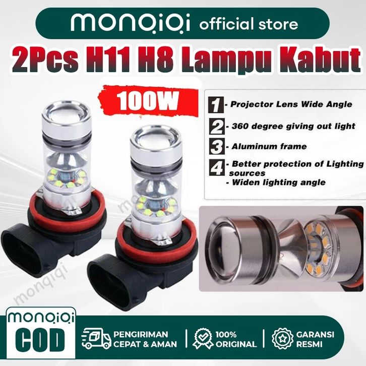 Monqiqi 2Pcs H11 H8 Lampu Kabut Lampu LED Mobil Super Terang 100W 20SMD 4300K 1000LM Mobil Warna