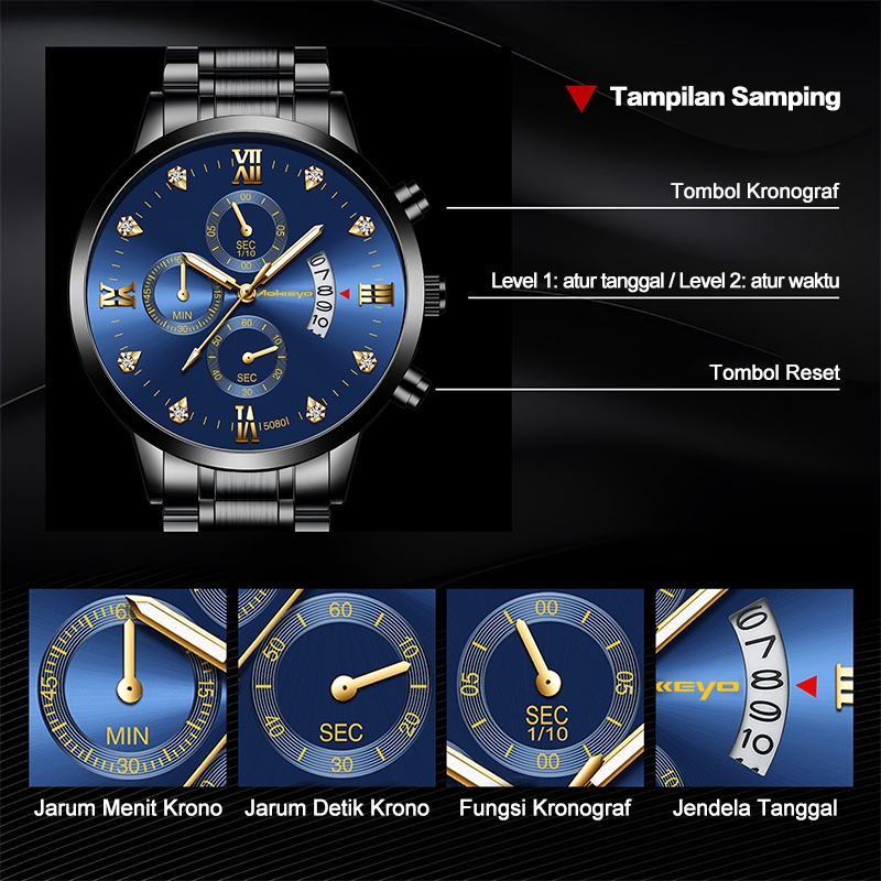 AOKEYO 5080 Jam Tangan Pria Anti Air Original Luxury Stainless Steel Free BOX+Kartu Garansi