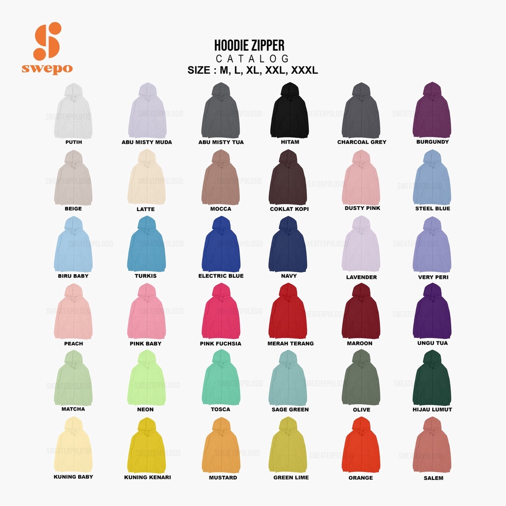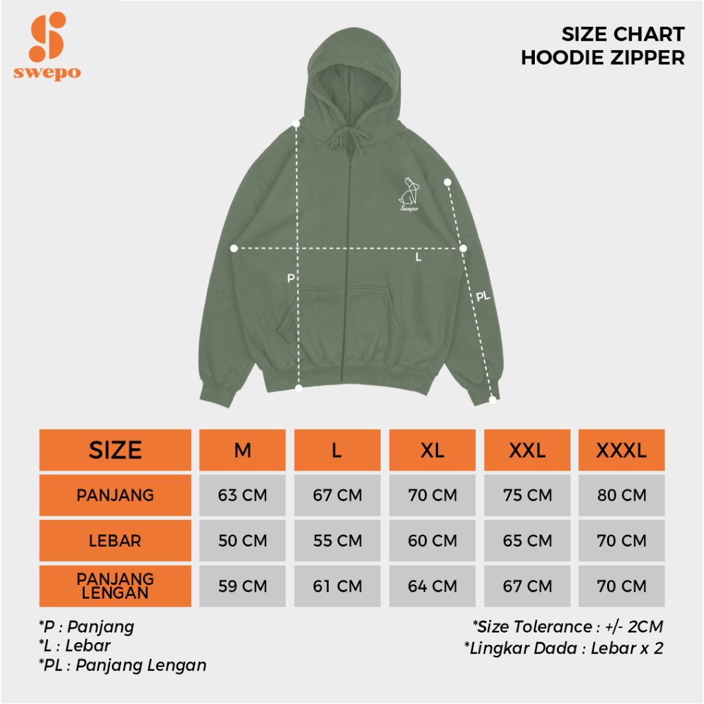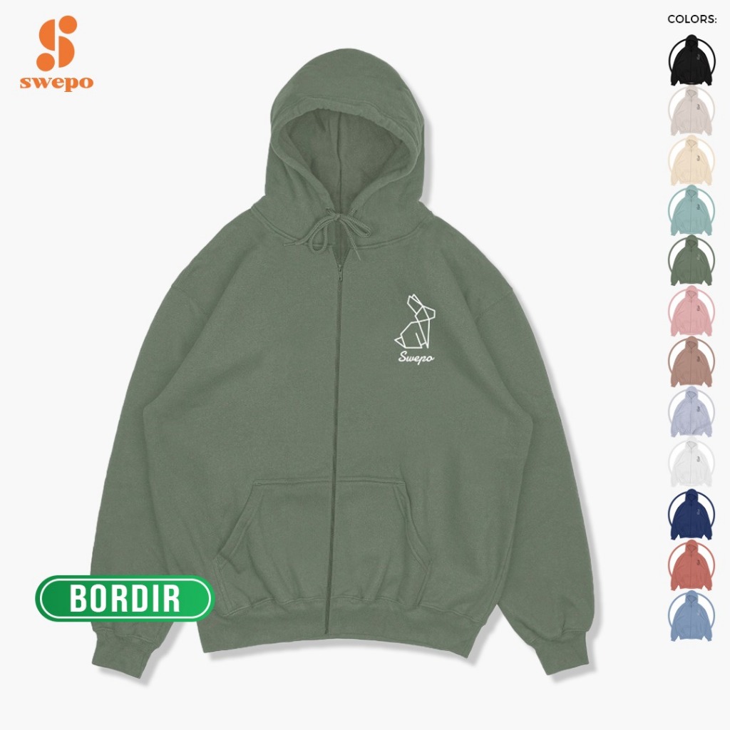 SWEPO Hoodie Zipper Poly Bunny (Bordir) Size M-XXL (Pria & Wanita)