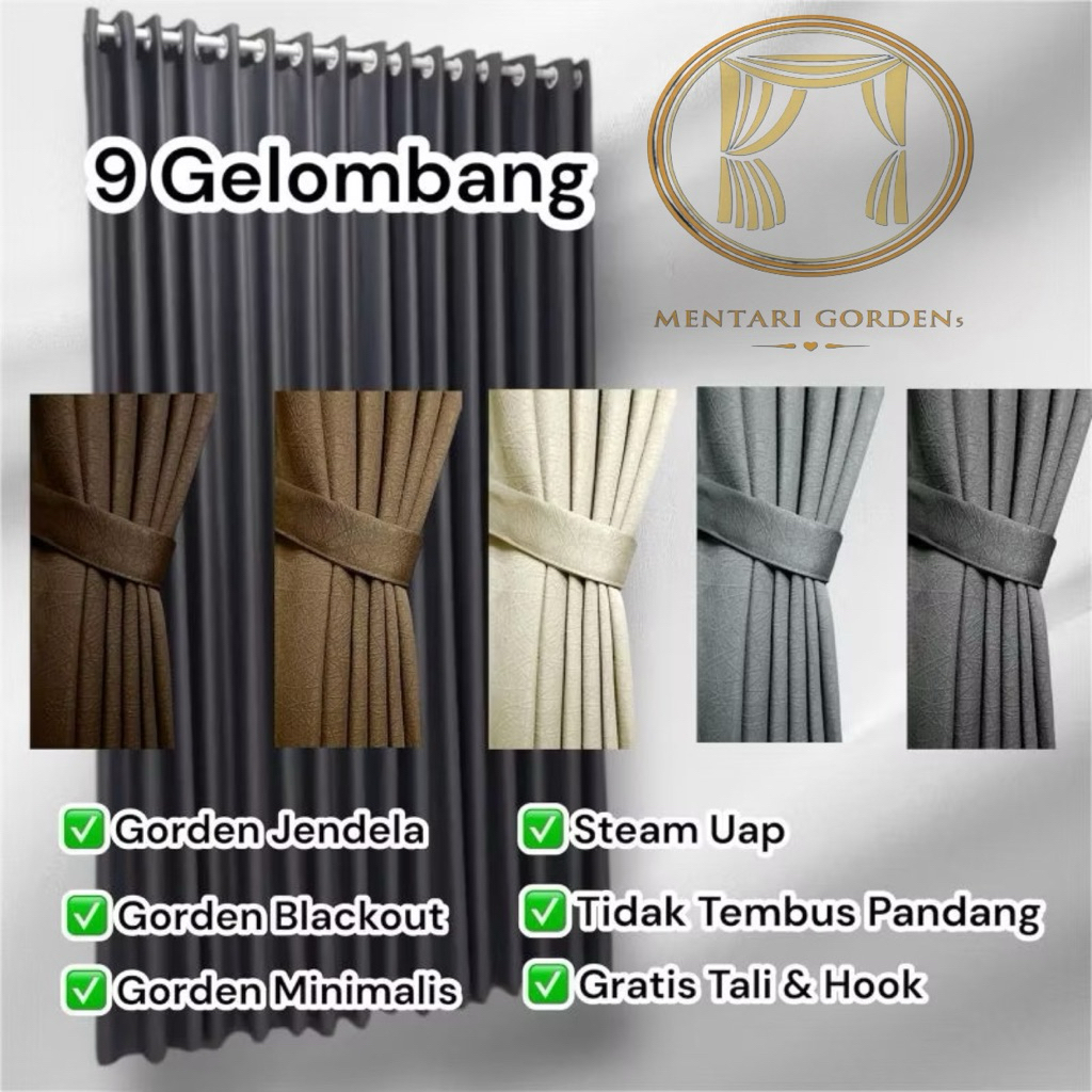 Gorden blackout polos 9 gelombang dan 12 gelombang serat abstrak depan doff belakang glossy