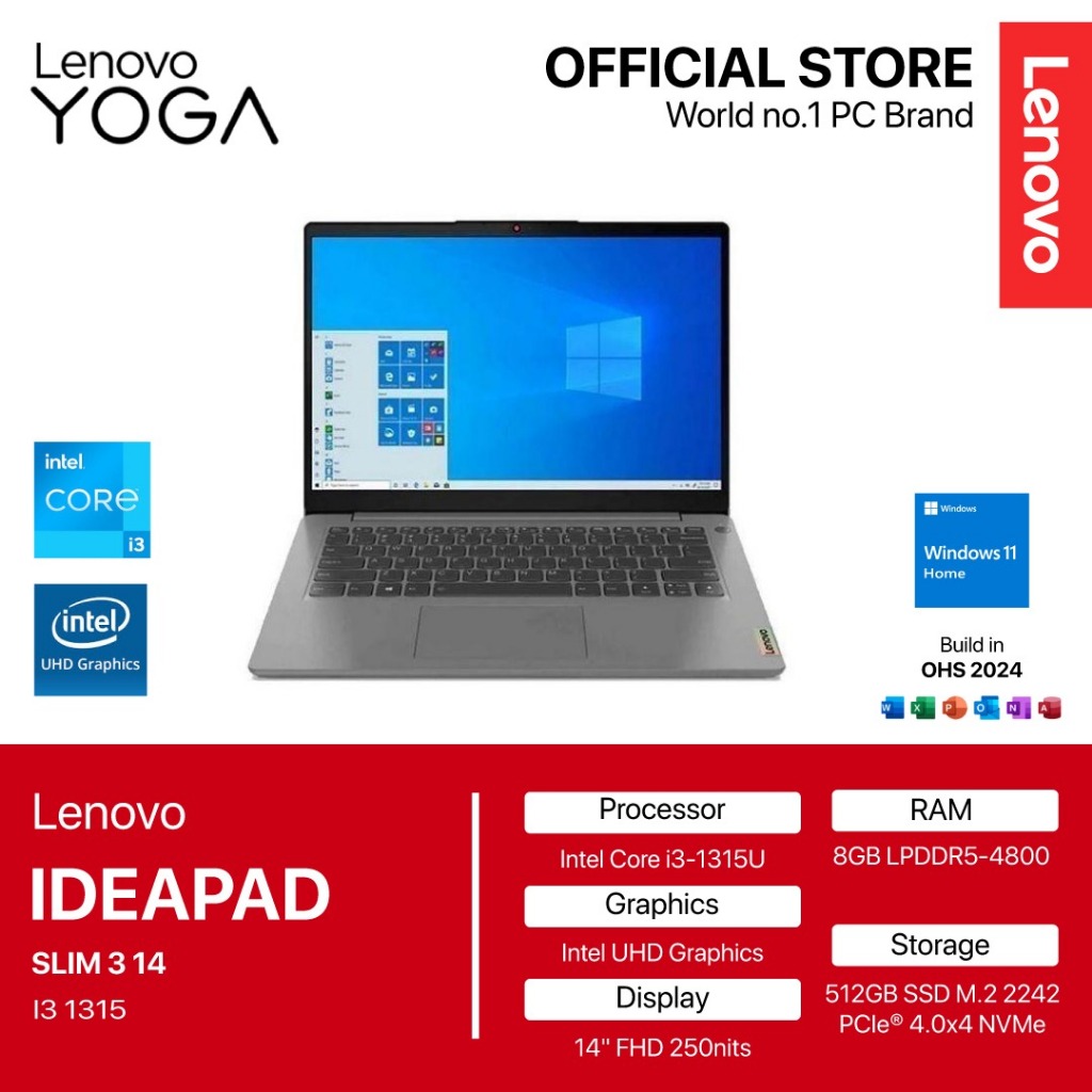 LENOVO IDEAPAD SLIM 3 14 I3 1315 - RAM 8GB 512GB W11+OHS 14.0FHD BLIT -5MID