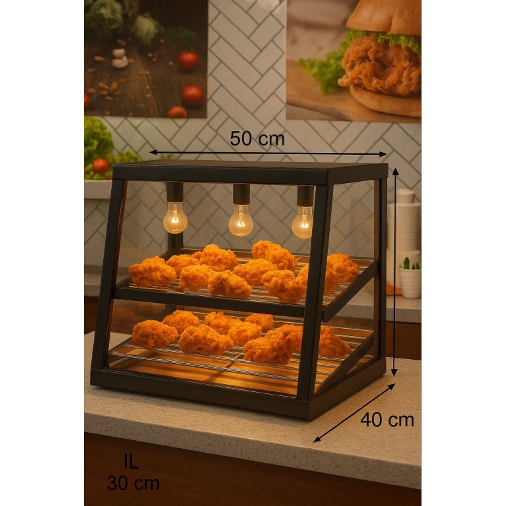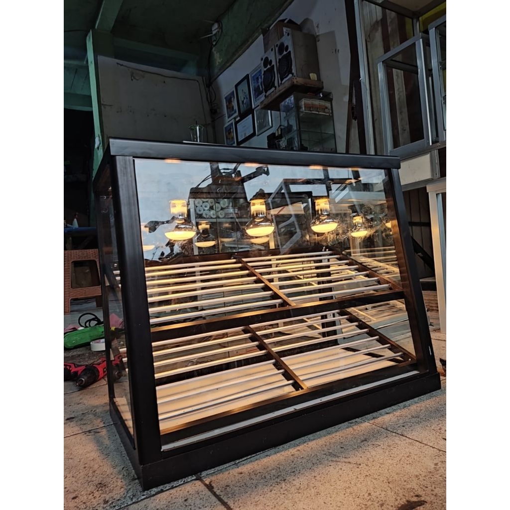 Etalase warmer berbagai ukuran dengan peniris dan lampu