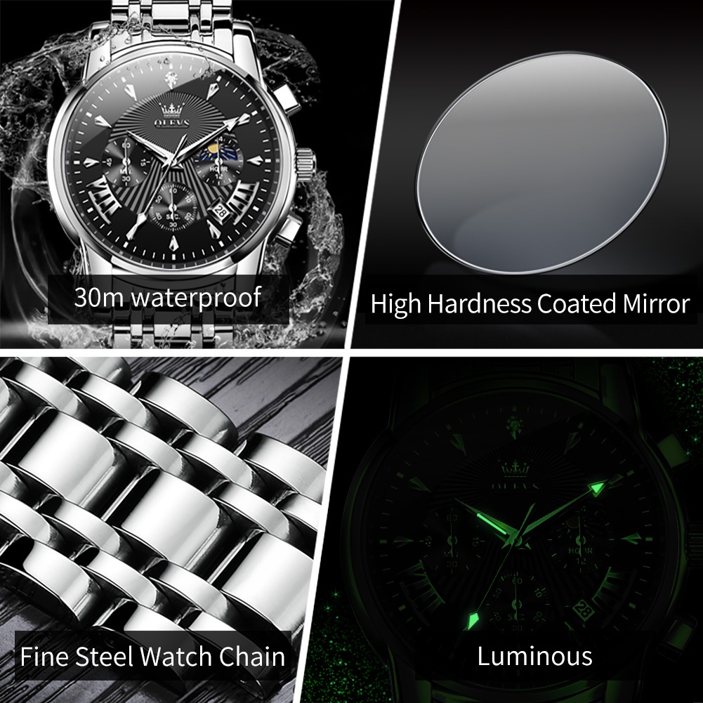 OLEVS Jam Tangan Pria Anti Air Original Cowok Chronograph Terbaru Tahan Luxury Led Sport Analog Stainless Steel Watch Me
