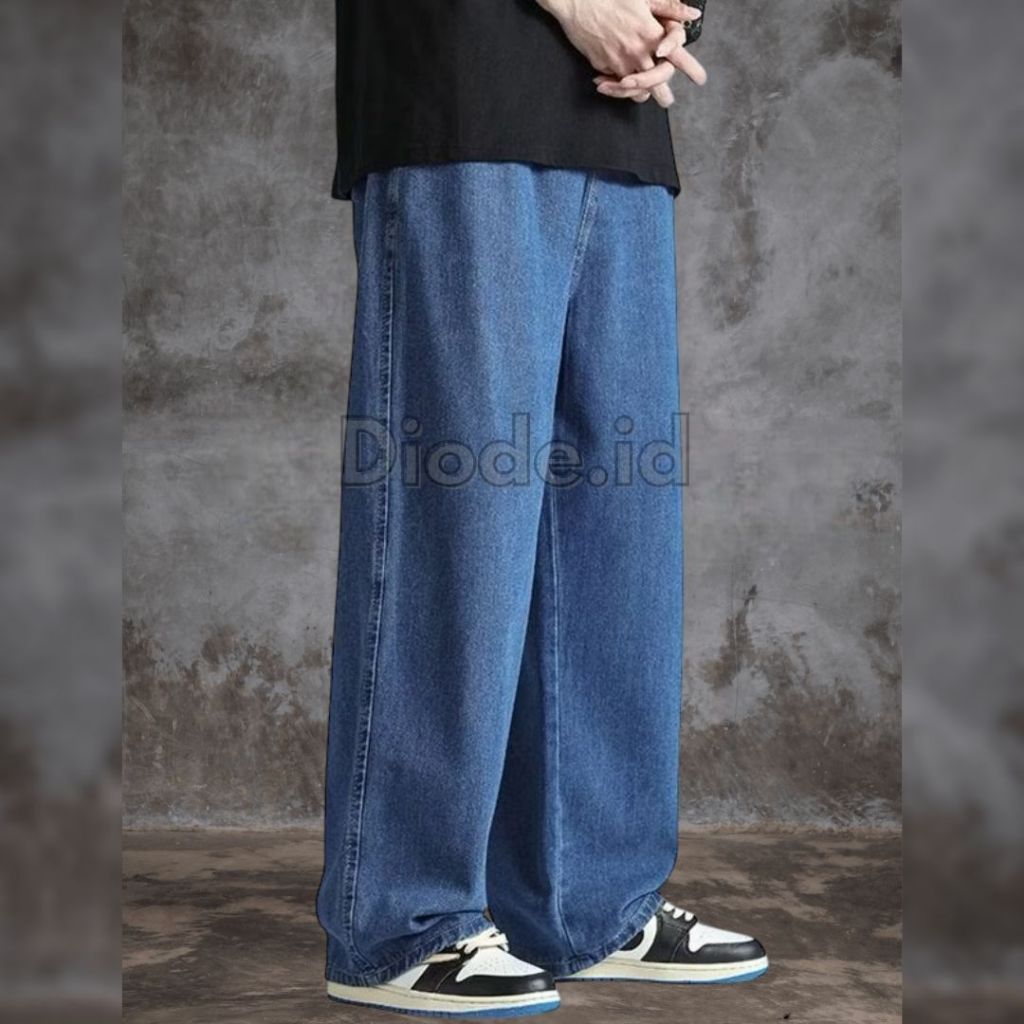 Celana Jeans Pria Baggy Pants Korean Style Oversize Straight Loose Blue Reguler Fit