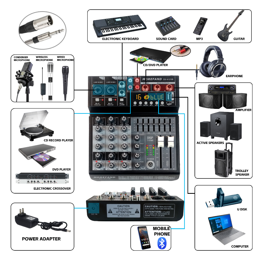 Professional Power Amplifier Mixer audio- 7-Band Graphic Equalizer XLR Direct Speaker Connection + Bluetooth All-in-One