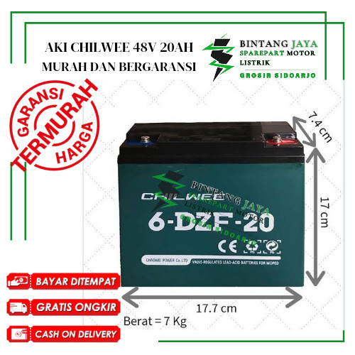 TERMURAH Aki Kering Chilwee Sepeda Listrik 48V 20AH Murah Bergaransi 6 Bulan Type 6-DZF-20 - 1 PCS