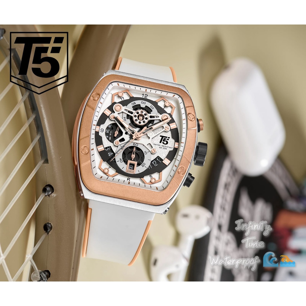 Jam Tangan Cowok T5 H3857G H3857 3857 Chrono dan Tanggal Aktif Strap Rubber Kualitas Original Waterproof