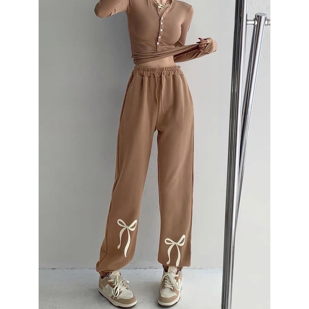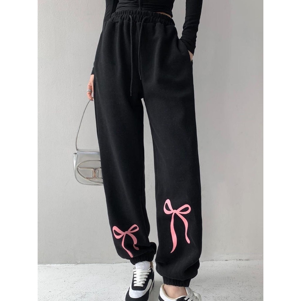 (ready) Anne Ribbon Pants / Celana Sweatpants