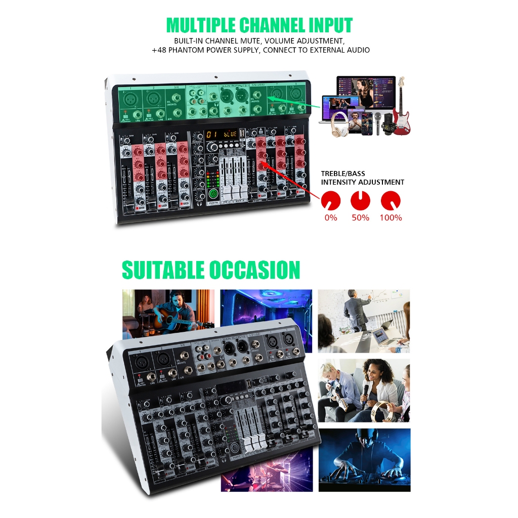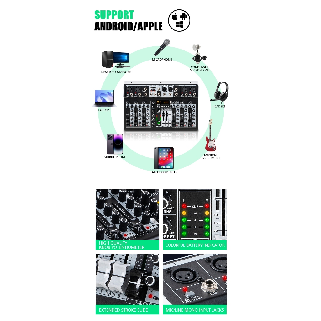 Mixer Audio Profesional Aibedo KP Series 4/6/8 Channel dengan Bluetooth, 99DSP, Antarmuka Audio USB, dan Perekaman MP3 -