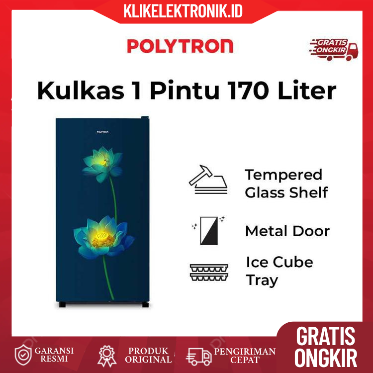 GRATIS ONGKIR POLYTRON Kulkas 1 Pintu Beauty Steel 170 liter PRB 177LB