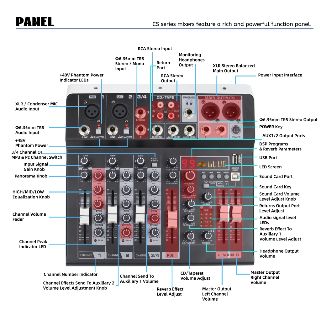 Mixer audio mixer profesional Mixer Studio Professional CS Series 4/6/8 Channels Support 99DSP/ DAW/Bluetooth5.0