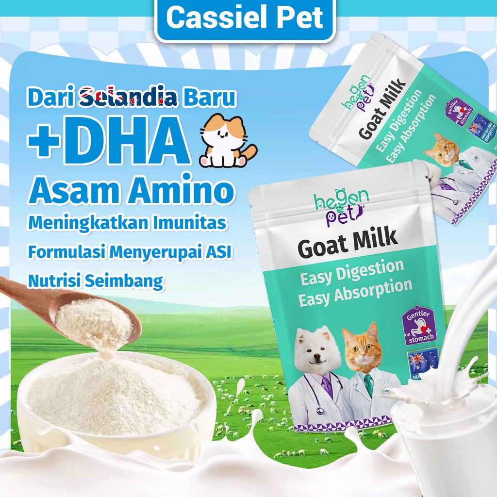 Hegen Pet Susu Kucing 0 - 12 Bulan Susu Kambing Bubuk Nutrisi Sehat & Alami untuk Anjing/Hamster