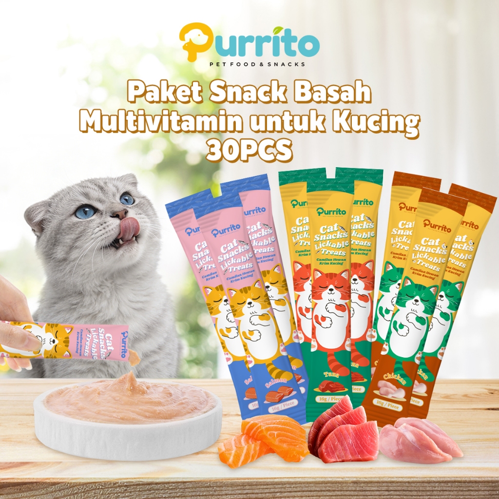 Purrito Snack Kucing 30pcs Cat Strip Ayam Cemilan Kucing Bergizi Makanan Kucing Kitten Snack Kucing Penggemuk
