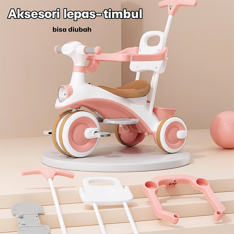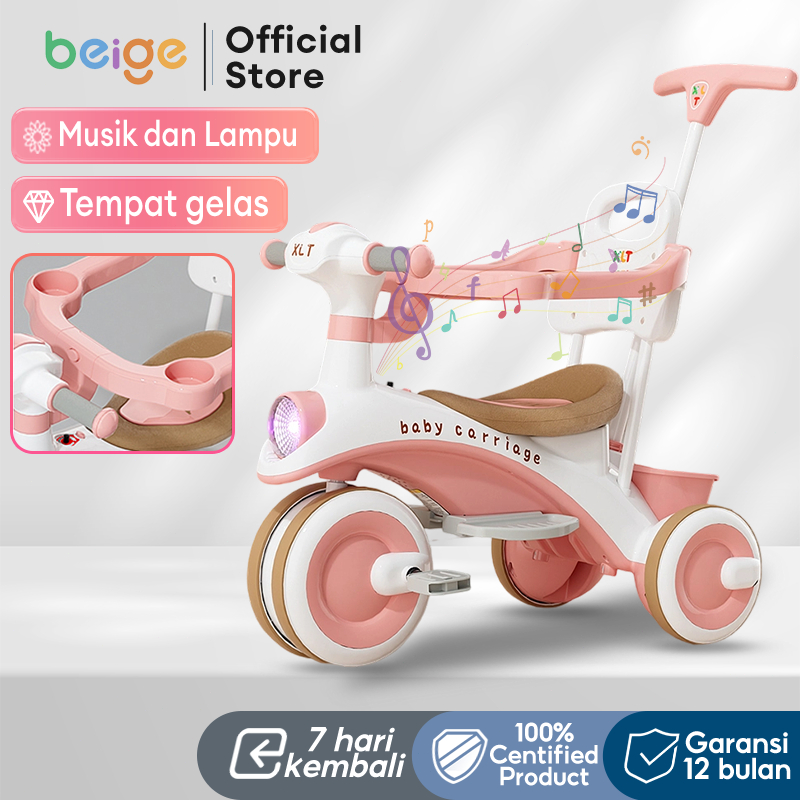 BEIGE Sepeda Anak Roda 3 Stroller Baby Dengan lampu dan musik usia 1-8 tahun